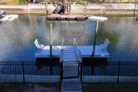 On the main floor there is a bedroom with one Queen bed and a set of Bunk beds with private bathroom. The second bedroom has one Queen bed and a set of Bunk beds with private bathroom. Upstairs there is are two bedrooms with one Queen bed each. These bedrooms share a bathroom. The last bedroom is the master bedroom with King bed and private bathroom with a tub/shower. This bedroom has access to a deck on the canal side of the house and the rooftop deck.