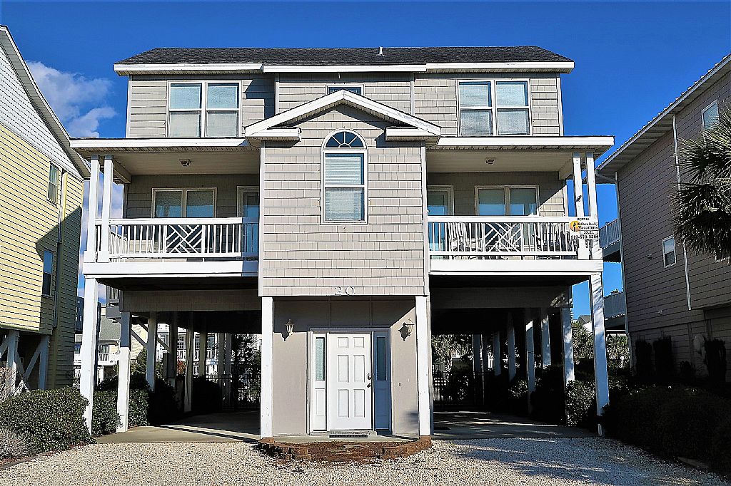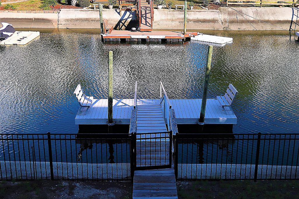 This large canal home offers 5 bedrooms and 4 bathrooms. Enjoy features such as central heat and air, microwave oven, dishwasher, disposal, washer/dryer, 2 cable TV’s, phone, ceiling fans, covered deck, rooftop deck, and an outdoor enclosed shower. Located on concrete canal with floating dock. Direct beach access at Leland Street.