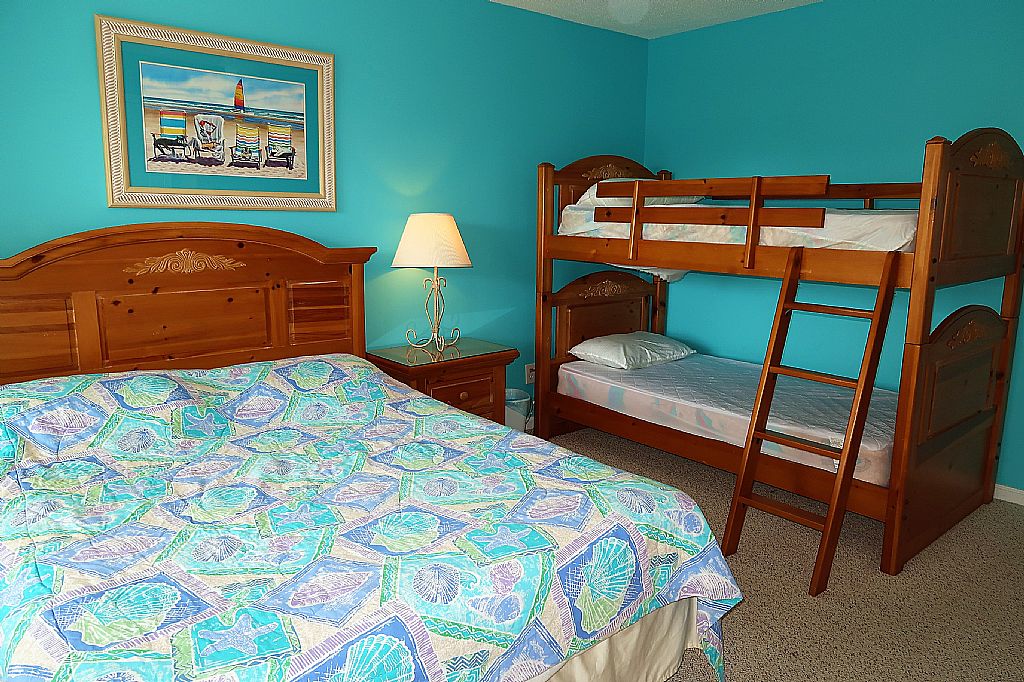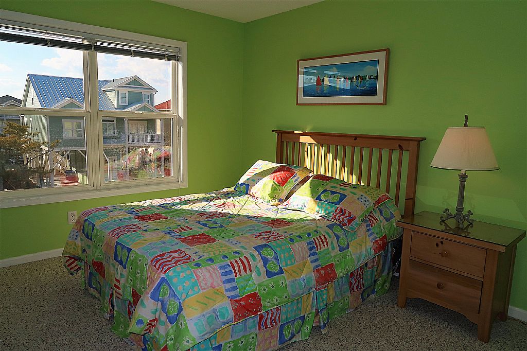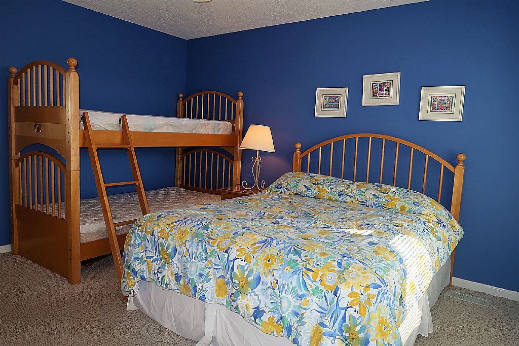 On the main floor there is a bedroom with one Queen bed and a set of Bunk beds with private bathroom. The second bedroom has one Queen bed and a set of Bunk beds with private bathroom. Upstairs there is are two bedrooms with one Queen bed each. These bedrooms share a bathroom. The last bedroom is the master bedroom with King bed and private bathroom with a tub/shower. This bedroom has access to a deck on the canal side of the house and the rooftop deck.